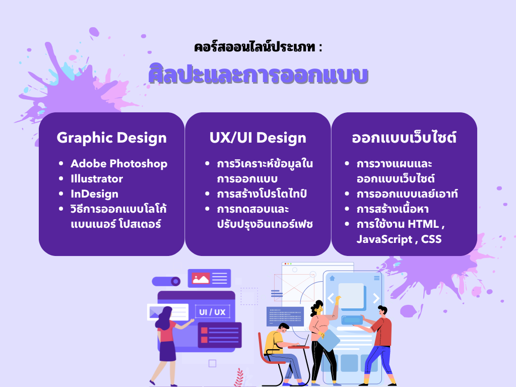 - คอร์สออนไลน์ในหมวดนี้จะเรียนรู้หลักการและกระบวนการออกแบบ UX/UI ตั้งแต่